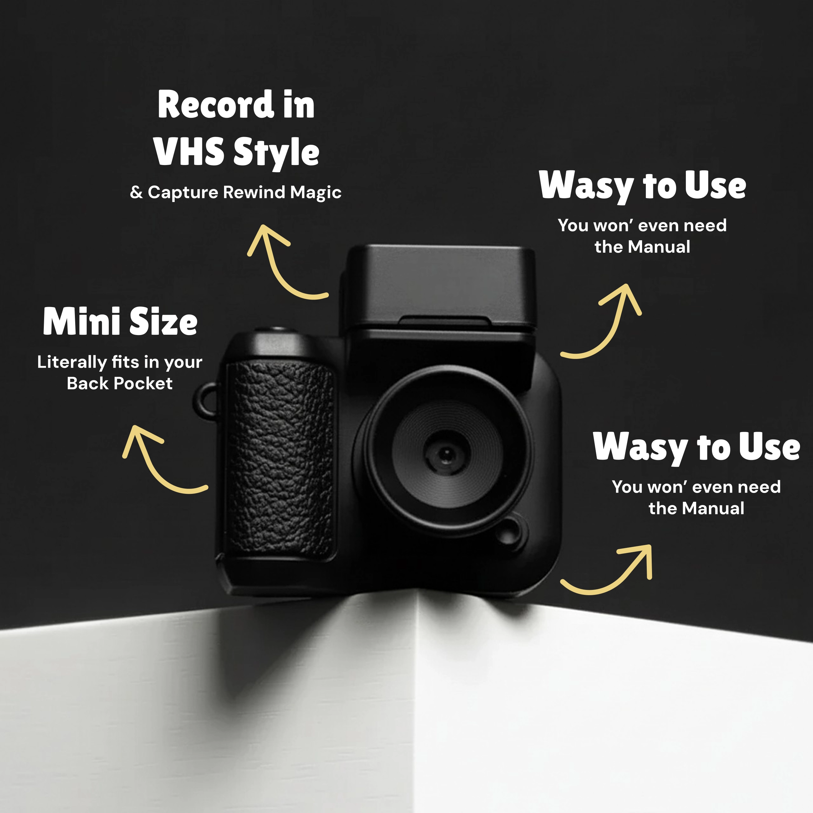 This pocket-sized digital camcorder records nostalgia in true VHS-style—no film, no complicated setup. Just pure, retro memories made modern. The Rewind Vault™ lets you relive the good old days anytime, anywhere.